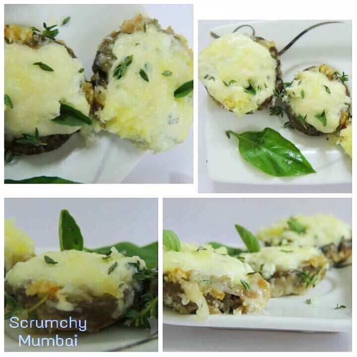 - Take a spoon or a piping bag and stuff the grilled mushrooms with this mixture.